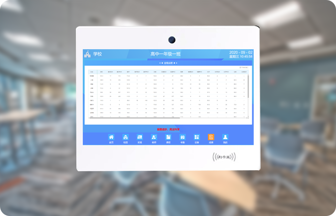 品科電子班牌設(shè)備管理可對(duì)教室內(nèi)新風(fēng)系統(tǒng)、空調(diào)、多媒體、黑板燈、自習(xí)燈、窗簾、溫濕度、